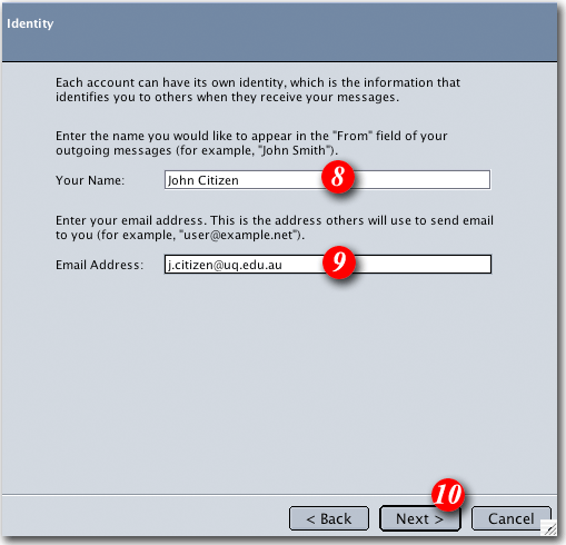 | 8)Type in your name as you would like to appear in outgoing email messages |