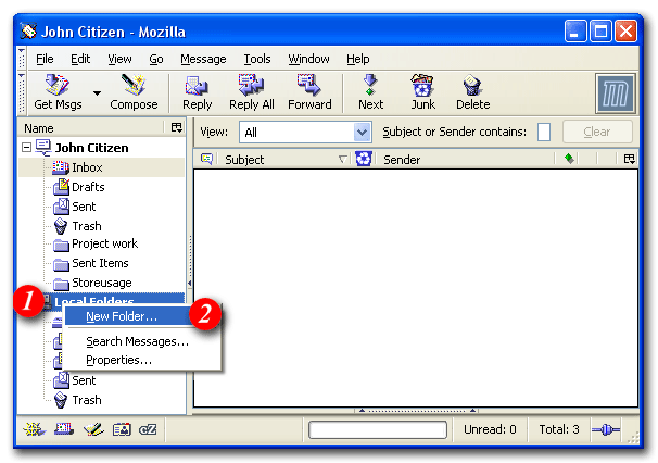 | To help you to manage your mail quota you may find it useful to create a number of sub- folders within your local folders area. To create a new sub-folder: |